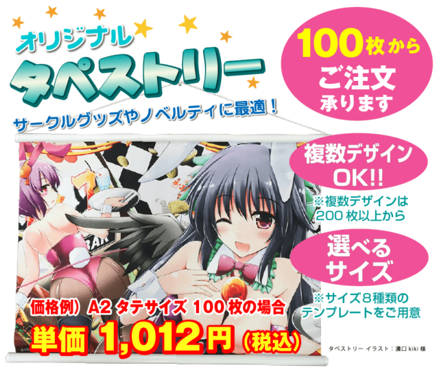 オリジナルキャラスリーブやオリジナルポリバッグ、冷感タオル、ブランケット、クッションカバー、タペストリー、プリントマスクなど、多種多用なオリジナルグッズを小ロットで作製してくれる業者。コミケ用のグッズ製作などにも慣れており、量産も可能。オリジナルグッズ作りに迷っている人は相談してみよう。